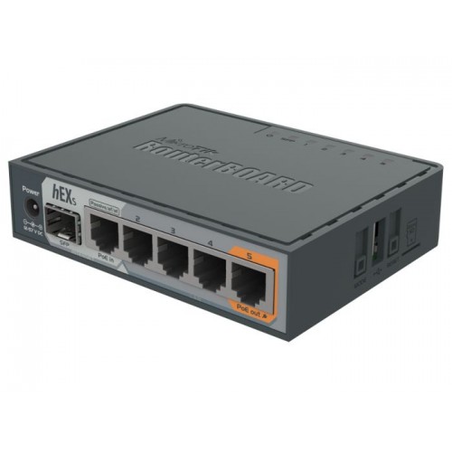 The Mikrotik RB760iGS hEX S 5x Gigabit Ethernet Router S is a five port Gigabit Ethernet router for locations where wireless connectivity is not required. Compared to the hEX, the hEX S also features an SFP port and PoE output on the last port. It is affordable, small and easy to use, but at the same time comes with a very powerful dual core 880 MHz CPU and 256 MB RAM, capable of all the advanced configurations that RouterOS supports. The device has a USB 2.0, PoE output for Ethernet port #5 and a 1.25Gbit/s SFP cage. IPsec hardware encryption (~470 Mbps) and The Dude server package is supported, microSD slot on it provides improved r/w speed for file storage and Dude. This Ethernet Router comes with 01 year of warranty.
